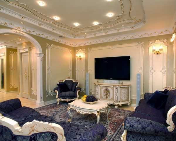 Большой плазменный экран в интерьере гостиной в стиле барокко