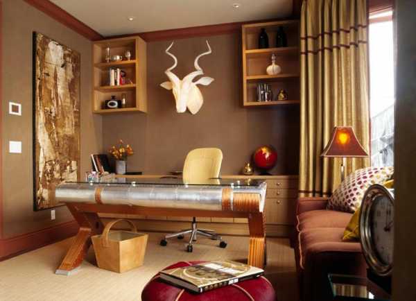Коричневый цвет в дизайне домашнего офиса поможет настроиться на рабочий лад