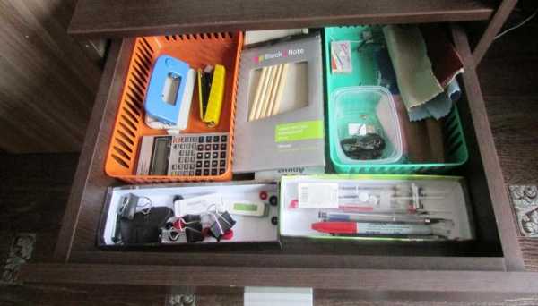 Поэтому я рекомендую вам хранить лишь небольшое количество мелких принадлежностей в ящике стола (для немедленного использования), а остальные запасы держать в другом месте – корзине или шкафу.