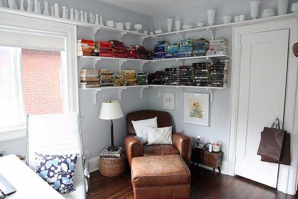 Можно не ограничиваться обычным рабочим местом и превратить часть комнаты в уютный читальный уголок. Все, что для этого понадобится – кресло, журнальный столик, настольная лампа (или торшер) и, конечно же, небольшая полка для хранения любимых книг.