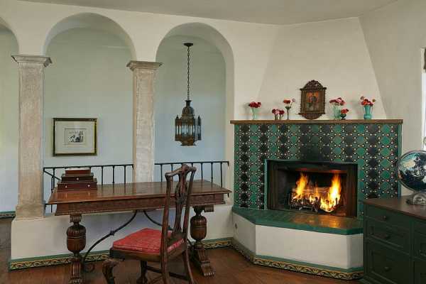 По-настоящему волшебную атмосферу в импровизированном кабинете поможет создать камин. В такой обстановке он будет смотреться особенно ослепительно. И не нужно беспокоиться о лишних квадратных метрах, ведь домашний очаг можно использовать в качестве подставки для телевизора.