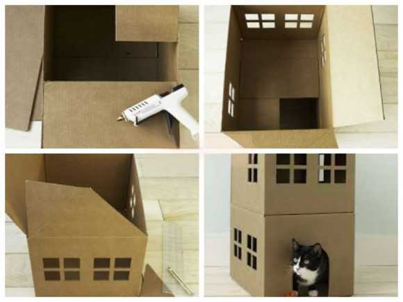 Домик для кошки из коробки: поэтапно