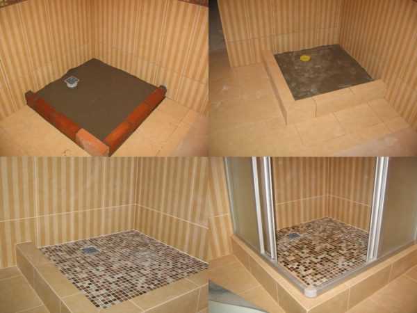 Вариант душевого поддона, выложенного из кирпича и плитки. остается только закрепить на нем стенки и дверцы.Для душевого уголка может быть выбор:
