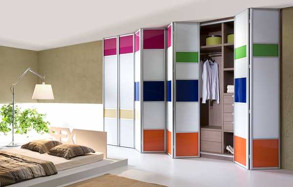 - Угловые. Раздвижные угловые конструкции, позволяют оптимизировать и грамотно организовать пространство гардеробной.
