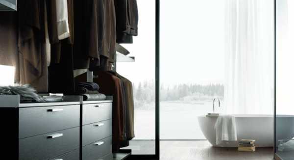 На фото: модель Metis wardrobe от фабрики Huelsta.5 Важные мелочи. Поскольку именно здесь вы будете раздеваться перед походом в ванную, позаботьтесь о корзинах для грязного белья. Не лишним будет и пушистый ковер, на котором приятно стоять босыми ногами.