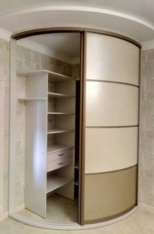 За счет изогнутой направляющей полукруглой формы, радиусные конструкции, не только значительно расширяют площадь гардеробной, но и преображают обстановку, делая ее по-настоящему уникальной.