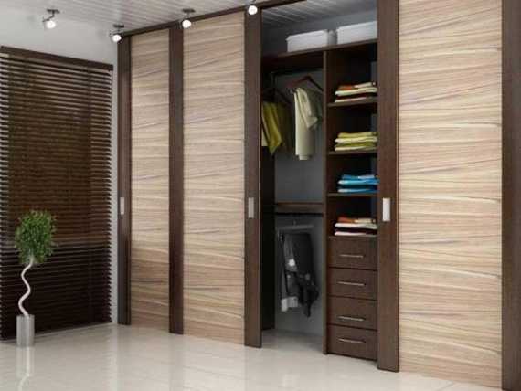 Раздвижные двери для гардеробной (43 фото): плюсы, минусы, виды конструкций