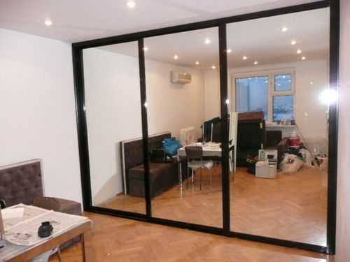 Раздвижные двери с зеркальной поверхностью