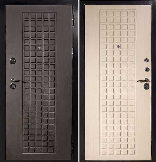 Часто входные двери имеют разную текстуру — снаружи металлический каркас, а внутри отделка из МДФ. Внешняя текстура должна соответствовать фасаду здания, а внутренняя отвечать требованиям интерьера.