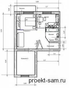 Перепланировка двухкомнатной квартиры в пятиэтажке