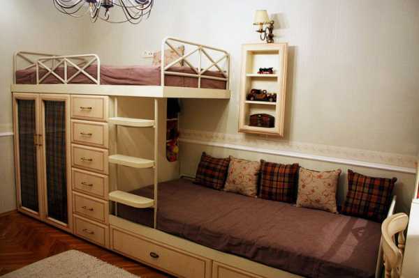 - главный плюс – это экономия места в спальной комнате. Двухъярусная кровать позволяет без труда решить проблему размещения двух спальных мест на тесной площади;