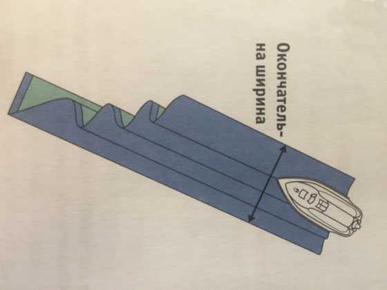 Думаю на рисунке все понятно подписано (рис.1): расстояние между складками по 10см, последнее — 13-15см (половина ширины складки)