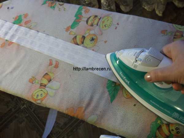 Все, наш ламбрекен готов, но прежде, чем его вывешивать, надо отутюжить планку, прихватывая немного верхний край складочек, и дать изделию остынуть: