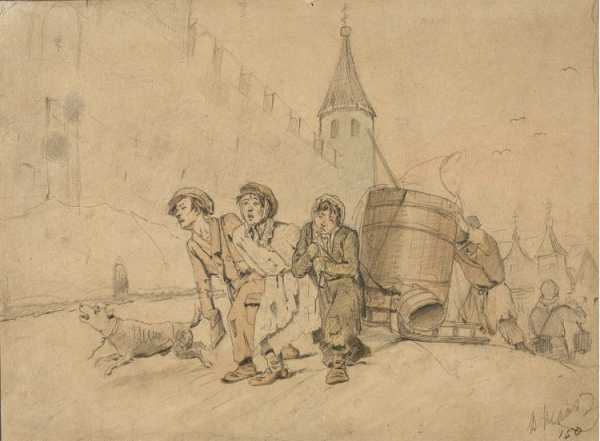 Перов В.Г. «Тройка». Ученики мастеровые везут воду. Эскиз одноименной картины (1866, ГТГ). Картон, графитный и цветной карандаши, акварель. Из собрания Третьяковской галереи.