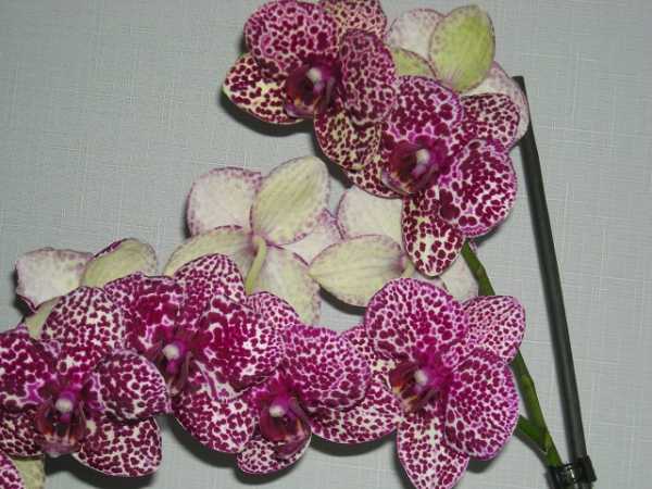 После появления почек на цветоносе последний необходимо закрепить с помощью держателей, чтобы в дальнейшем растение находилось в вертикальном положении.