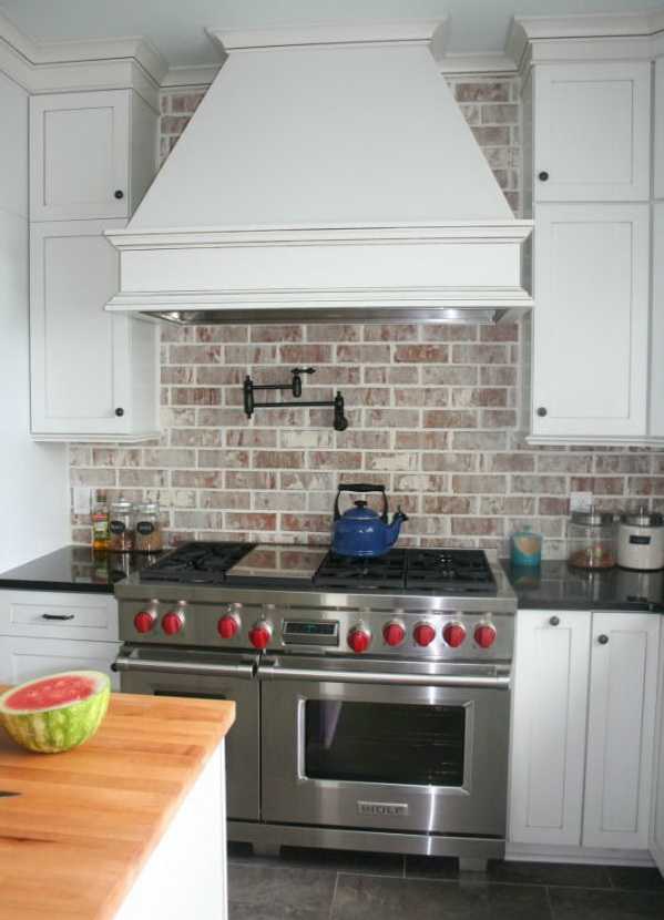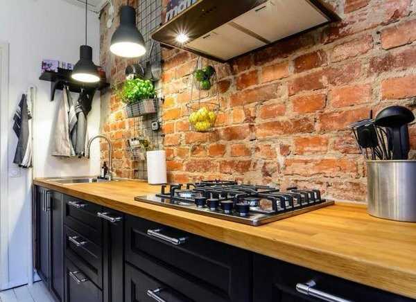 Фартук на кухне под кирпич или оформление рабочей стены из кирпича |