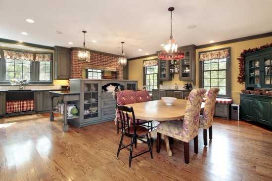 Имитация кирпича вносит в стиль оттенок кантри, общий вид при этом выглядит очень красиво и впечатляюще.