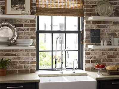 Для фартука из натурального кирпича характерны высокая теплостойкость, влагостойкость и ударопрочность. Кирпич стойко переносит применение различных средств бытовой химии. Может прекрасно смотреться в различных стилях. Но выложить его сложнее. Со временем швы начинают чернеть, что сказывается на внешнем виде. Это вынуждает прибегнуть к применению специальных чистящих средств. Да и смотрится более холодно и не так уютно, как стильная имитация.