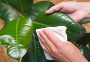 Нередко в квартире, особенно в зимнее время, влажность опускается до 35-40%. Для растения это губительно, ему правильно поддерживать показатель влажности на уровне 60-70%, потому листья фикуса необходимо периодически обрызгивать водой или поставить в комнате специальный увлажнитель. Рекомендуют фикус раз в месяц купать под душем. Листья надо протирать тряпочкой, так как они скапливают пыль.