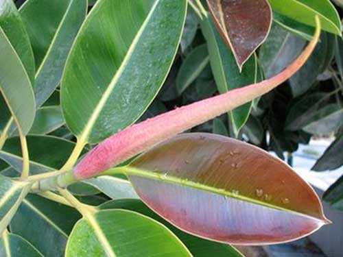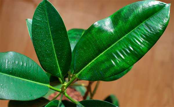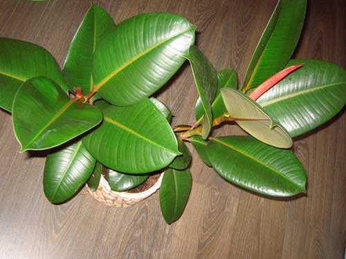 - Каучуконосный. Название получил за упругие, эластичные темно-зеленые листья.