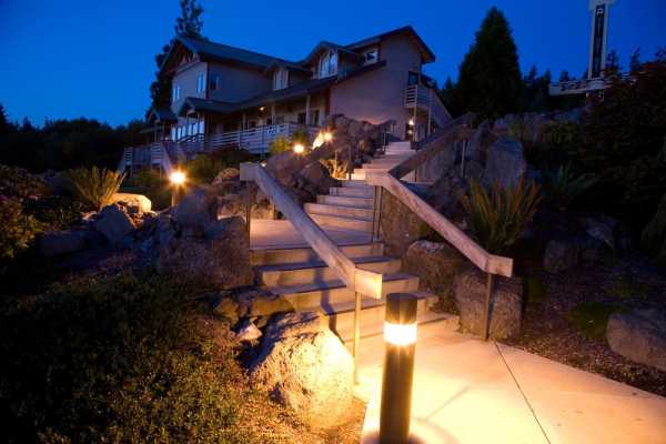 - функциональное – обеспечивает безопасность придомовой территории и комфортное её использование. Оно включает освещение маршрутов передвижения (лестниц, дорожек, подъезда к дому), а также построек на территории (беседка, веранда, летняя кухня, баня и т.д.) и периметра участка.