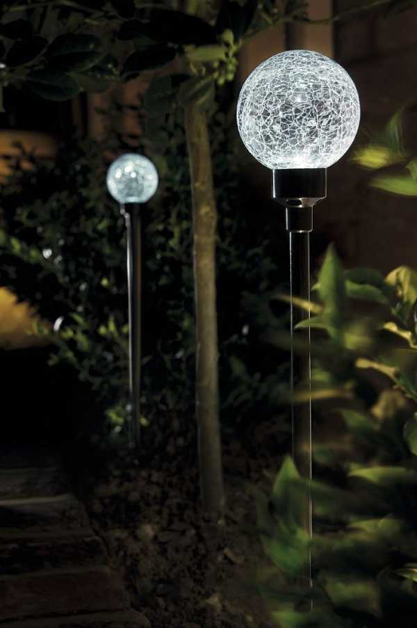 - чтобы предупредить ослепляющий эффект, создаваемый светильником в темноте, в садовых светильниках используют матовые сферы, изготавливаемые из поликарбоната