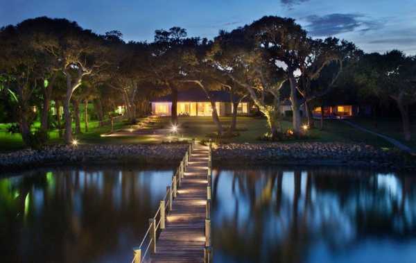 Скульптурный дом в Лас-Вегасе, находящийся на фото ниже является прекрасным примером того, как напольное освещение может создать настоящую завораживающую красоту, особенно после захода солнца. Он не только освещает затемнённые пейзажи, но и создаёт узоры и тени, которые дополняют стальную и стеклянную структуру дома.