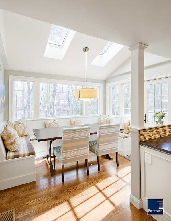 Независимо от того, какой стиль окутает ваш зал для обеда, мансардное окно с соответствующей отделкой станет эпицентром всеобщего внимания.