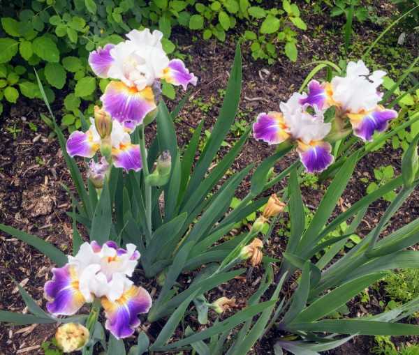 Бородатые ирисы превосходно смотрятся в букетах, пестрея своими окрасами и формами. Чтобы садовый участок долгое время был наполнен красотой их цветения, можно подобрать для посадки сорта, отличающиеся периодом распускания бутонов.