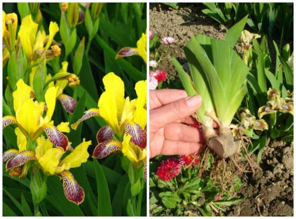 Пересаживать культуру можно в любое время года. Наиболее благоприятный период – через несколько недель после завершения цветения. Участок выбирается индивидуально для разных групп, например, болотные ирисы комфортней себя чувствуют в низинах, где скапливается влага, а бородатым выбирают солнечное место. При групповых посадках важно соблюдать дистанцию между растениями – для высоких сортов расстояние должно быть не менее 40 см, а для карликовых – около 15 см.