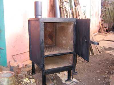 Используют эту модель буржуйки в нежилых помещениях — мастерских, теплицах, других хозяйственных постройках. Для работы в течение 9—12 часов достаточно бывает одной закладки мелких дров, щепок, опилок. В этой модели отопительного устройства нельзя использовать крупно наколотые и сырые дрова.