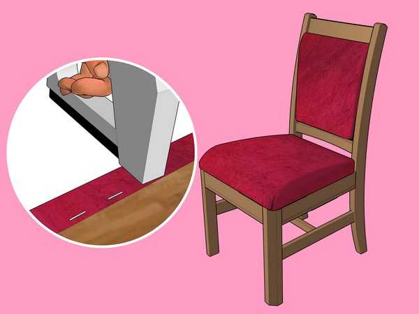 Обивку сиденья стула также не обязательно крепить так тщательно, как у табурета, можно обойтись пришпиливанием мебельным степлером без проклеивания. Обтягиваютподушку декоративной тканью обычным способом, подрезая образующиеся на углах рубчики. Но гораздо дольше прослужит обшивка, выполненная, как показано на рис. Если стул обтягивается гораздо более эластичной и дорогой, чем ткань, кожей, это обязательный вариант.