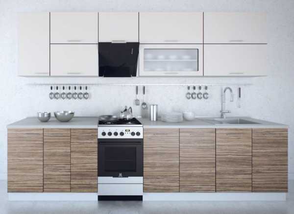 Линейная. Предназначена для оформления узких и небольших кухонь площадью до 12 м2. Чтобы пространство использовалось максимально правильно, под столешницей гарнитура располагают встроенную технику, систему выдвижных ящиков и столешниц.