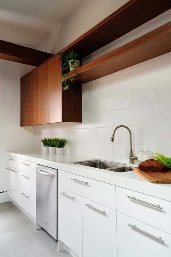 Не реже в этом случае устанавливают и обычную прямую кухню. Это классический вариант. Занимает не много места, стоит обычно дешевле аналогичных другой формы, так как материалов на производство нужно меньше, а установка проще.