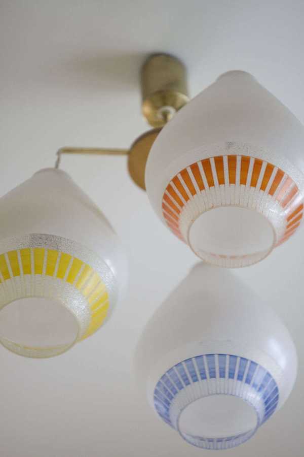 Идеально вписывающаяся в интерьер люстра в гостиной тоже «с биографией» — светильник в стиле 60-х на деревянном основании достался от соседей, надо было лишь заменить электрику.
