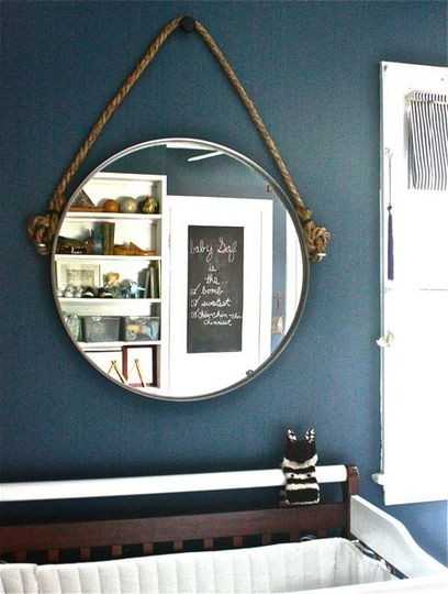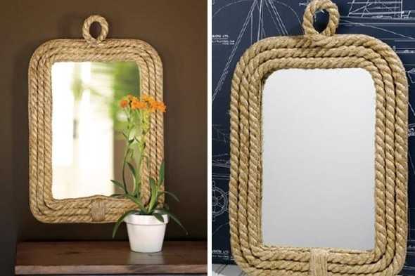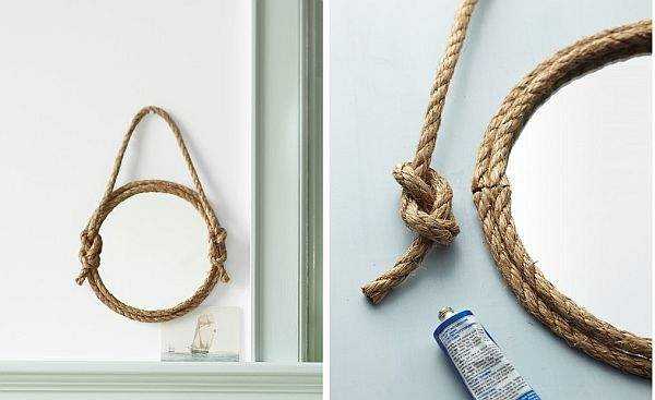 Это еще один интересный и простой проект. Для этого вам понадобится пеньковый канат, круглое зеркало без рамы, клей.