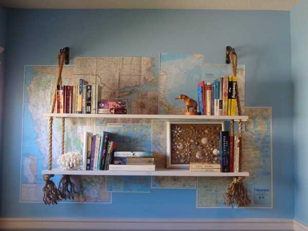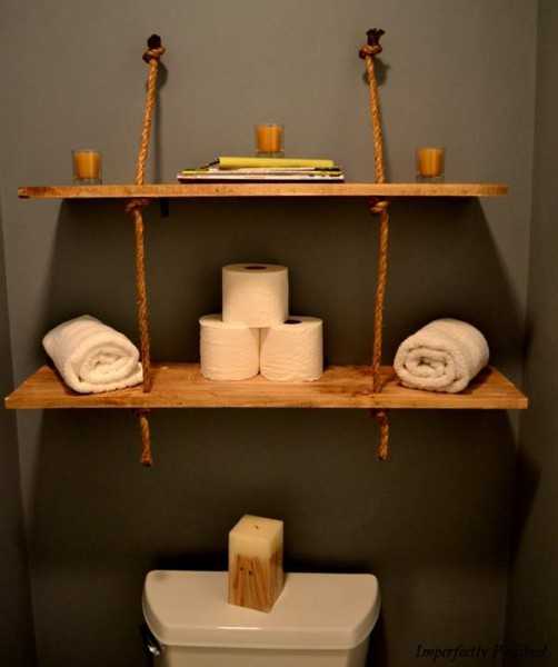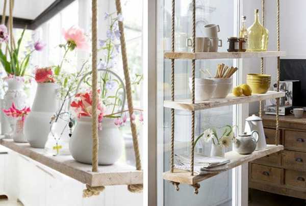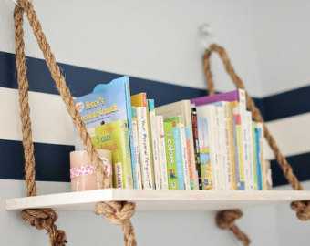 Интересно использовать канат для полок. Их при желании очень легко сделать самим. Особенно популярно использовать такие полки в детских комнатах или в ванной. Вот еще 6 мастерклассов — как сделать полку своими руками.