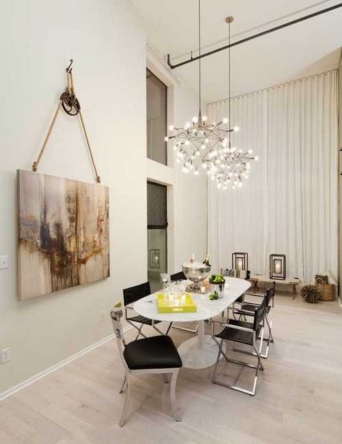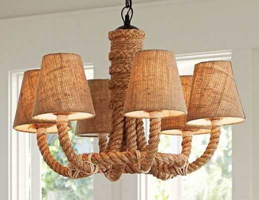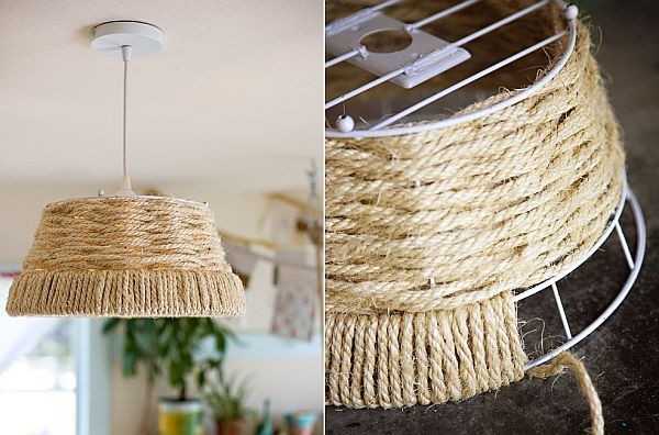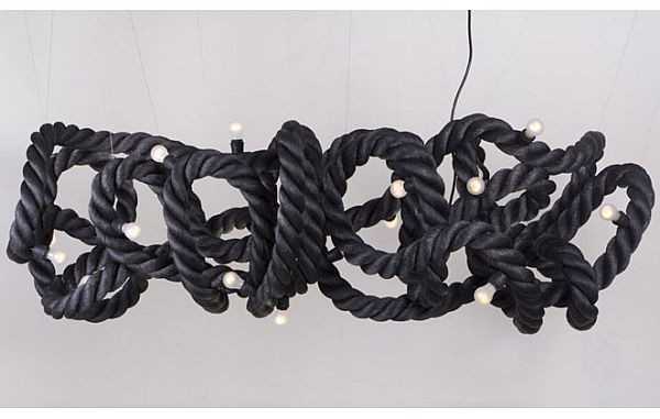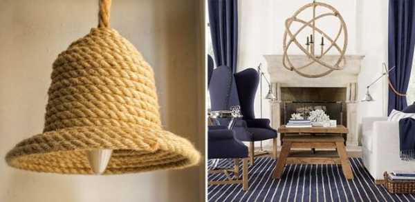 Еще одно ноу-хау в использовании веревок и канатов – люстры. Не удивляйтесь, если вы зайдете в дом, а на потолке будет завязан узел с парой горящих ламп. Хотя, иногда они принимают более причудливые формы.