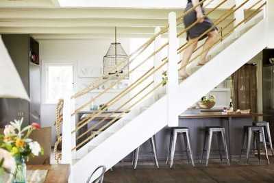 Канат отлично подходит и для декорирования лестниц: можно свободно разместить веревку вдоль ступеней, а можно использовать натянутый канат в качестве балясин.