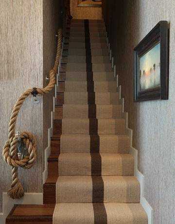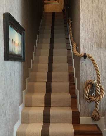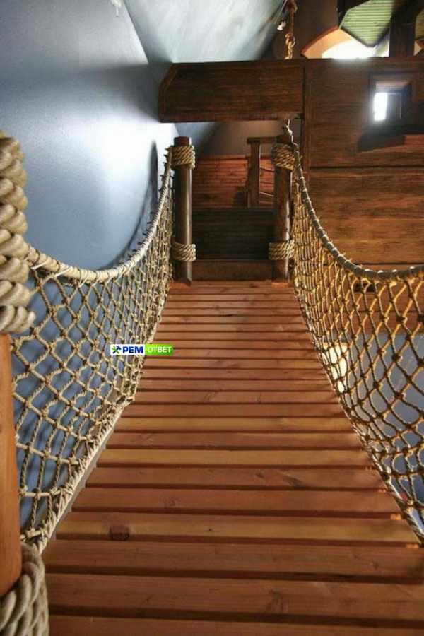 Веревка может быть использована для многих вещей, даже как лестничные перила. Толстый канат обеспечивает безопасность для пользователям лестницы, также является привлекательным и необычным аксессуаром.