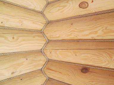 Фото: декоративные канаты из джута чаще всего применяются для отделки межвенцовых стыков (швов) между бревнами срубов внутри помещений.