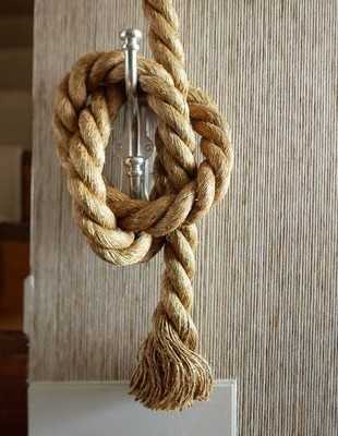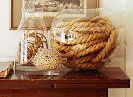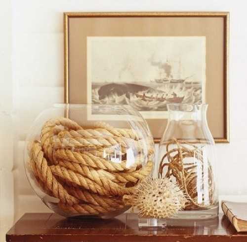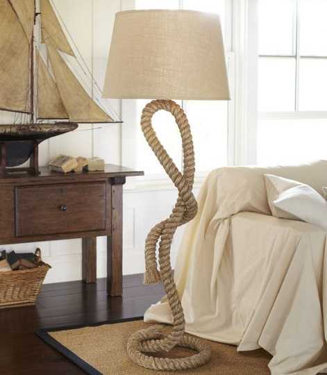 Речь о канатной веревке. Конечно же, данный материал не универсален: трудно представить его, например, в барочном интерьере. Зато эко-стиль, кантри, современный стиль, лофт, морской стиль отлично подходят для использования веревки в качестве аксессуаров и декоров.