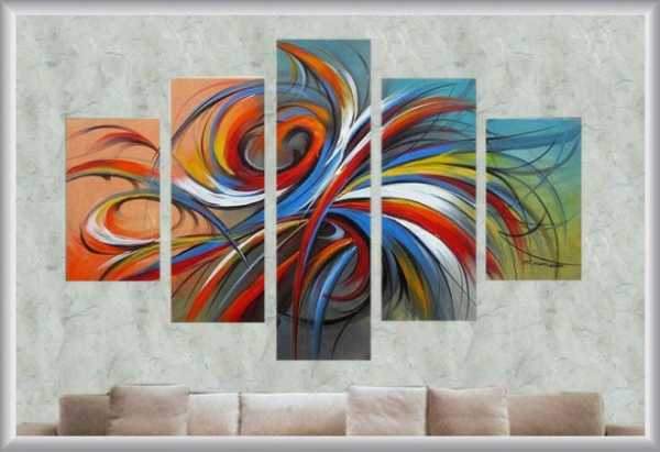 - Картина с абстракцией станет ярким элементом декора. Оригинальные образы и нестандартный сюжет станет отличным украшением в зале.