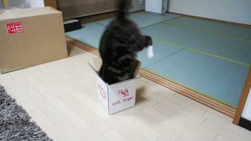 Уютный домик для кошки можно сделать абсолютно из любой коробки. Предлагаем провести эксперимент: возьмите ненужную тару, поставьте ее в том месте, где планируется разместить (на полу, столе или же в шкафу) жилье для любимца, и засеките время, через которой он будет забираться в эту коробку. Гарантируем, что как только пушыстый питомец увидет такую лежанку, он сразу же постарается ее оккупировать.