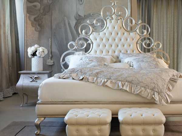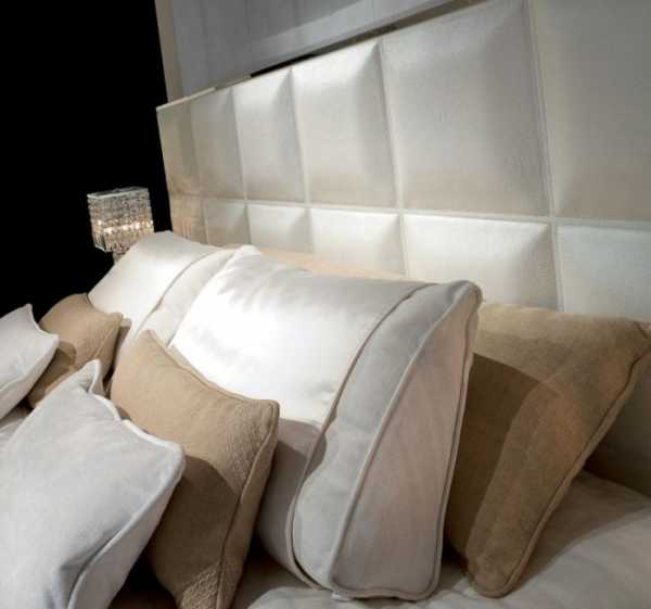 Мягкое изголовье кровати выполняет сразу несколько функций. В первую очередь – обеспечивает дополнительный комфорт, ведь оно является своего рода бордюром, который не дает подушкам соскальзывать на пол. Это хорошая находка для любителей отдыха с заложенными за голову руками – соприкосновение с приятной тканью изголовья куда приятнее, чем с холодной твердой стеной. Высокий борт станет отличной опорой, позволяющей комфортно облокотиться во время просмотра любимого фильма или завтрака в постели. Основное достоинство заключается, конечно, в декоративных функциях – мягкое изголовье способно значительно преобразить интерьер спальни, поэтому такие конструкции предпочитают устанавливать любители роскоши. Современный производитель выпускает самые роскошные кровати, которые имеют изголовья, дополненные слоновой костью или позолоченными украшениями.