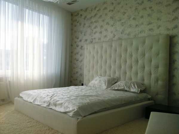 Кровать с мягким изголовьем, закрепленным на всю стену
