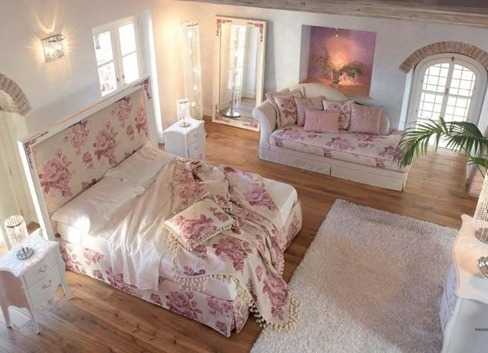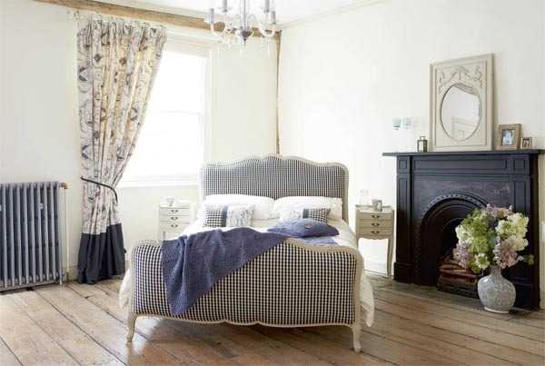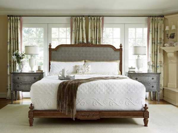 Кровать с мягким изголовьем с интересным оформлением в стиле прованс