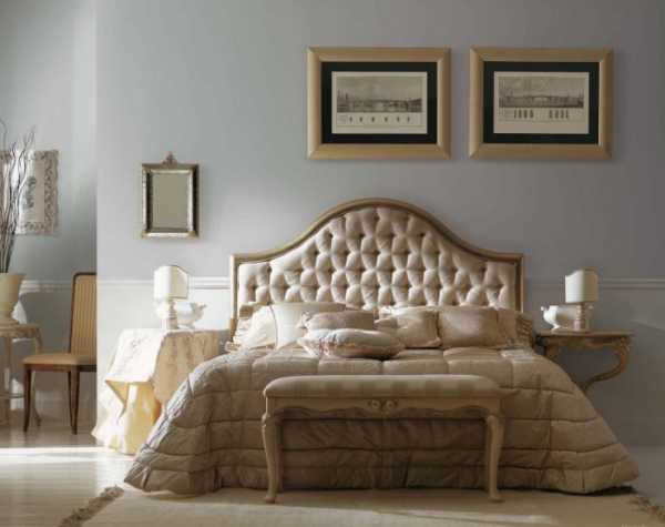 Отличное решение для спальни, оформленной как в старинном замке – кровать с мягким изголовьем в спокойных тонах