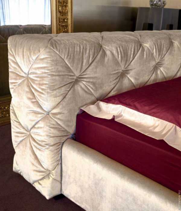Благодаря пуговицам или мебельным гвоздям со стразами, утопленными в спинке, получается добиться объемных квадратиков или ромбов, которые позволяют создать по-настоящему королевскую кровать. Каретная стяжка или капитоне, невероятно востребована в стиле барокко, рококо или других роскошных дворцовых стилях.