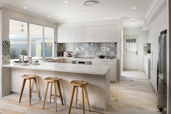Светлая и симпатичная П-образная кухня — отличный вариант дизайна кухонного пространства.